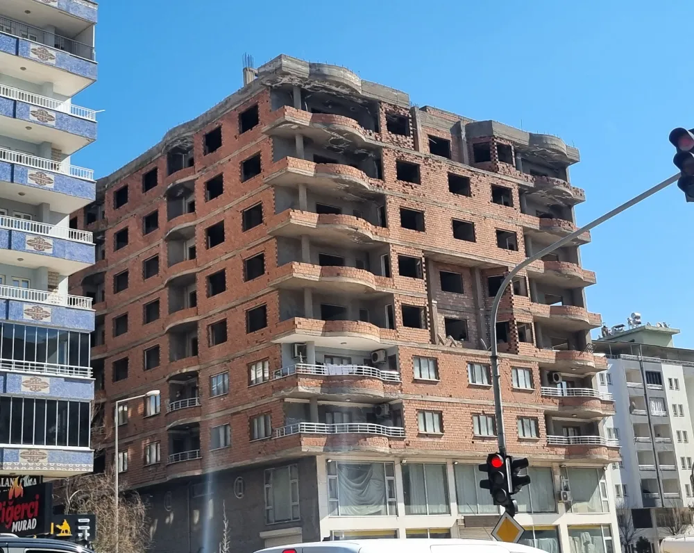 Batman’ın en kalabalık noktası olan Diyarbakır Caddesi üzerinde bulunan 9 katlı sıvasız bina, dökülen tuğlaları ve çatlayan yapısıyla vatandaşların korkulu rüyası haline geldi. "Facia geliyorum diyor" dedirten görüntü, her gün binlerce kişinin geçtiği güzergahta büyük risk oluşturuyor.
