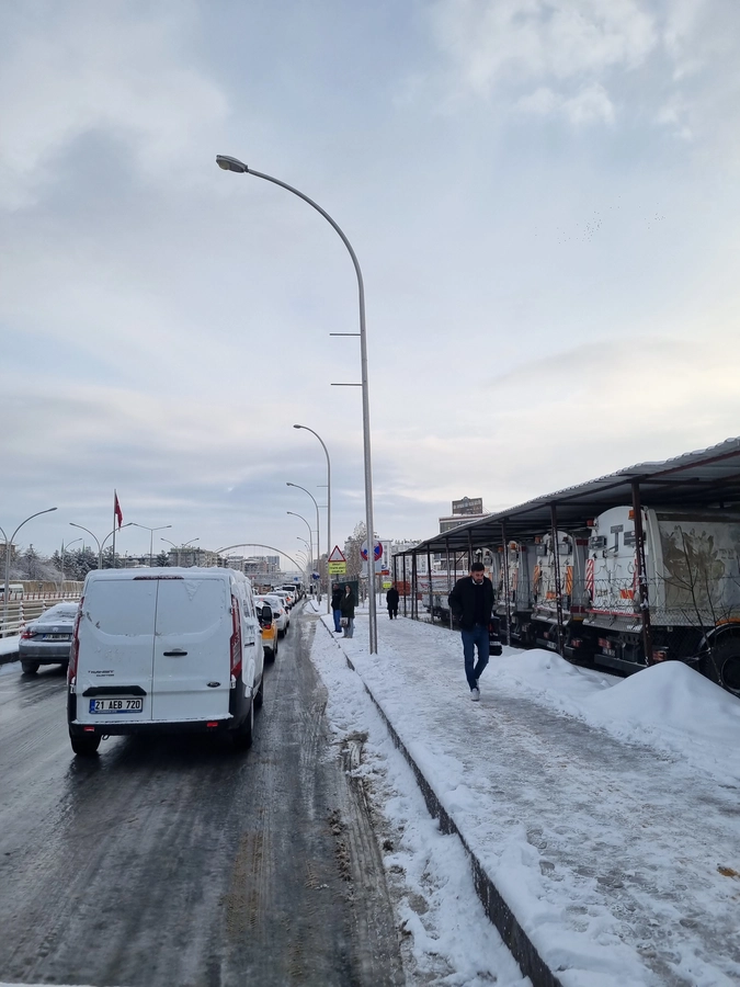 Sabahın erken saatlerinde trafiğe çıkan sürücüler, yollardaki gizli buzlanma nedeniyle direksiyon hakimiyetini sağlamakta güçlük çekti. Özellikle kentin en işlek noktalarından olan Şanlıurfa Bulvarı, Elazığ Caddesi ve Seyrantepe Kavşağı gibi ana arterlerde trafik akışı durma noktasına geldi.