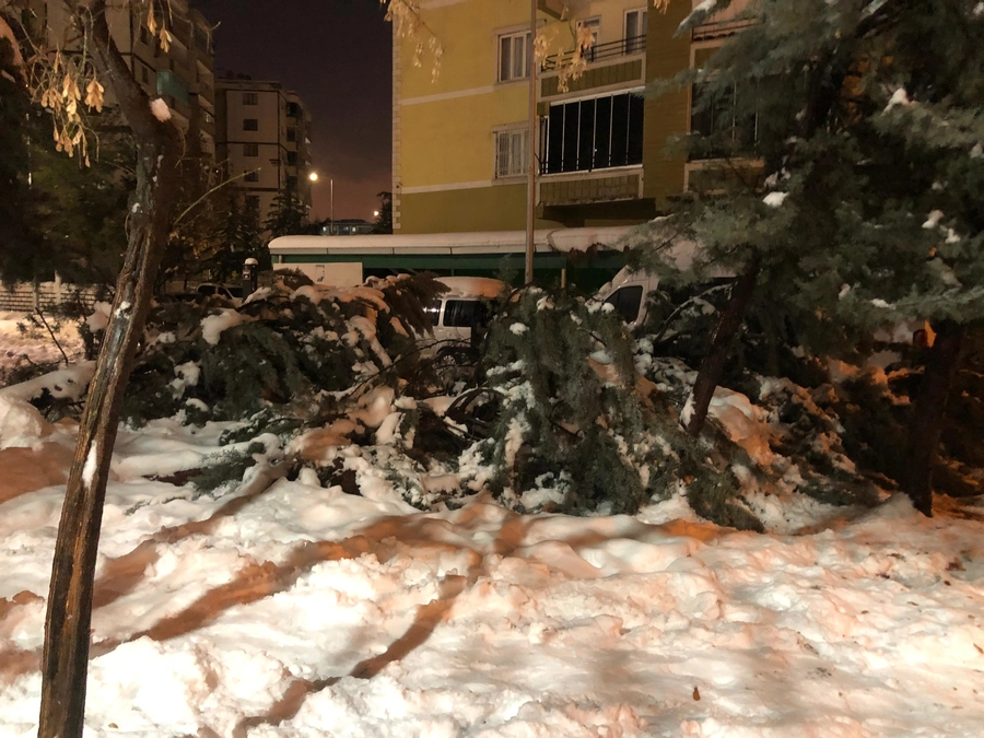 Özellikle "sulu kar"ın dallar üzerinde oluşturduğu aşırı ağırlık, parklardaki ve toplu konut alanlarındaki (siteler) ağaçların gövdelerinden kırılmasına ya da kökünden sökülmesine neden oldu. Bazı sitelerin bahçelerinde devrilen ağaçlar, park halindeki araçlarda hasara yol açarken, olay anında kimsenin dışarıda olmaması olası yaralanmaların önüne geçti.
