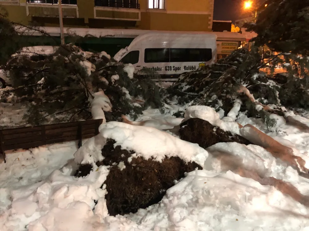 Diyarbakır’da günlerdir etkili olan yoğun kar yağışı, yeşil alanları vurdu. Ana yollarda ulaşım sağlanırken; parklar ve site bahçelerindeki ağaçlar, üzerlerinde biriken karın ağırlığına dayanamayarak devrildi.