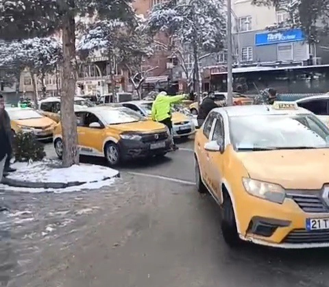 Diyarbakır’da artan maliyetler karşısında taksimetre ücretlerinin yetersiz kaldığını savunan ticari taksi sürücüleri kontak kapattı. Büyükşehir Belediyesi önünde toplanan yüzlerce şoför "Başkan buraya" sloganları atarken, eylem sonrası düzenlenen konvoyla şehirde kornalar susmadı.