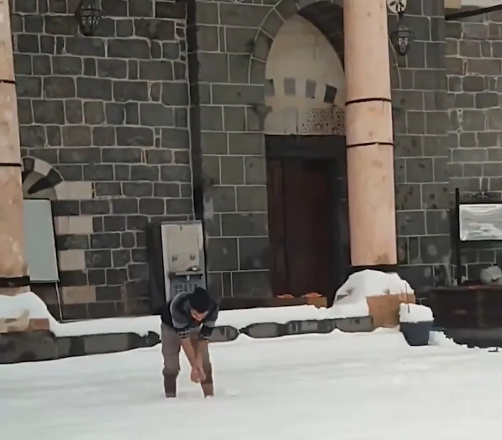 Merkezde bulunan bir camide vakit namazını kılmak isteyen bir vatandaş, abdest almak için musluklara yöneldi ancak suların donduğunu fark etti. Bunun üzerine vatandaş, ibadetini yerine getirebilmek için avluda biriken karla abdest aldı. O anlar çevrede bulunan bir kişi tarafından cep telefonu kamerasıyla kaydedildi.